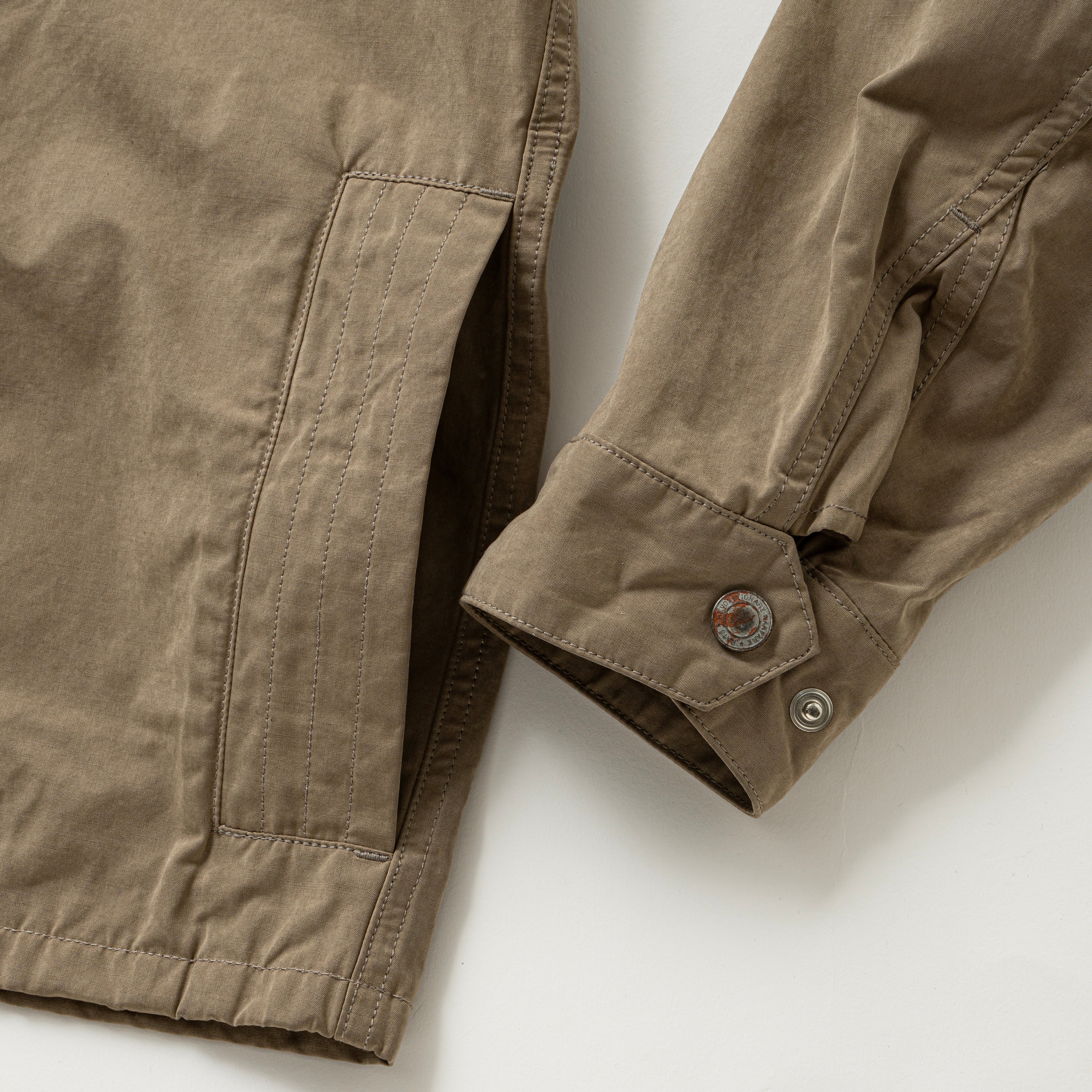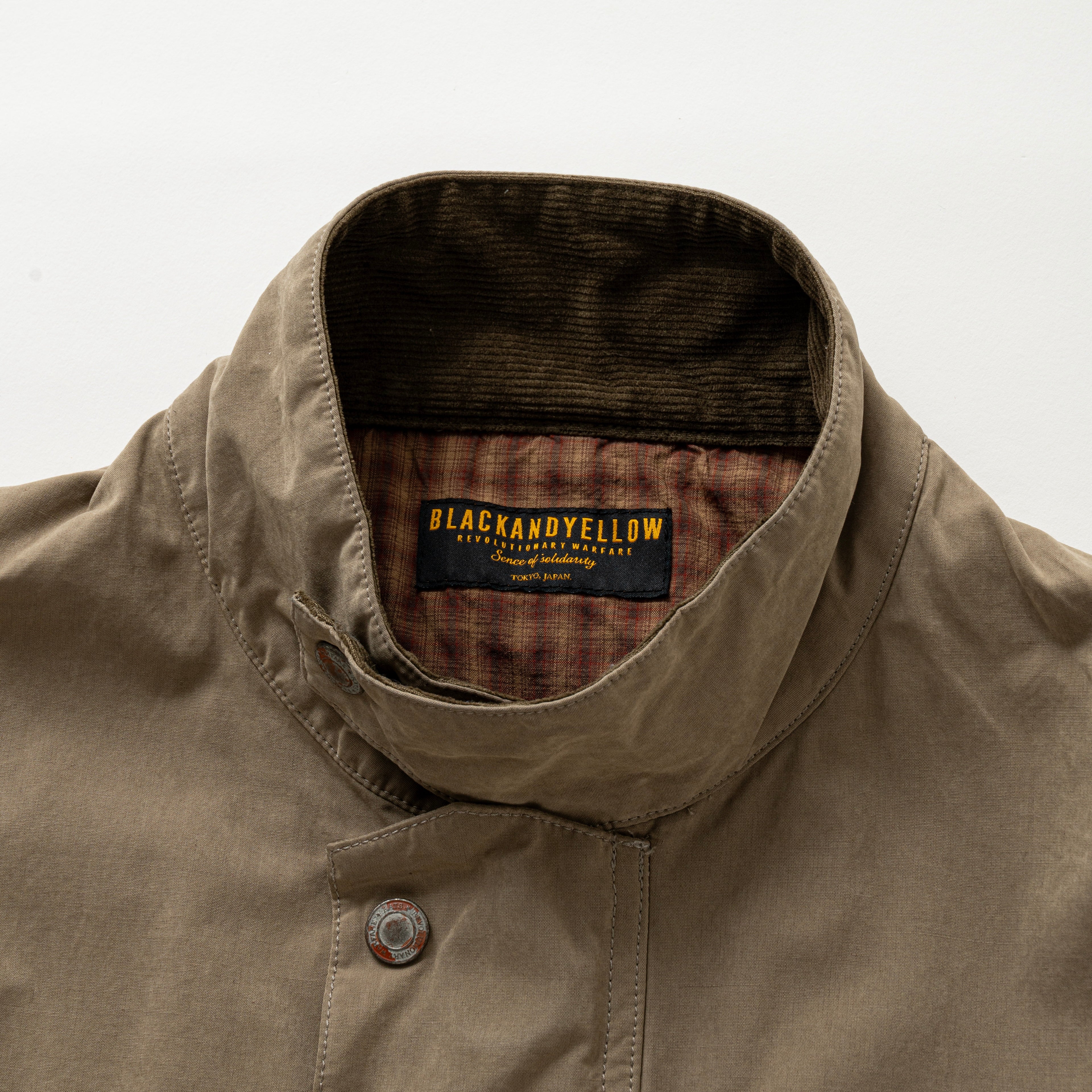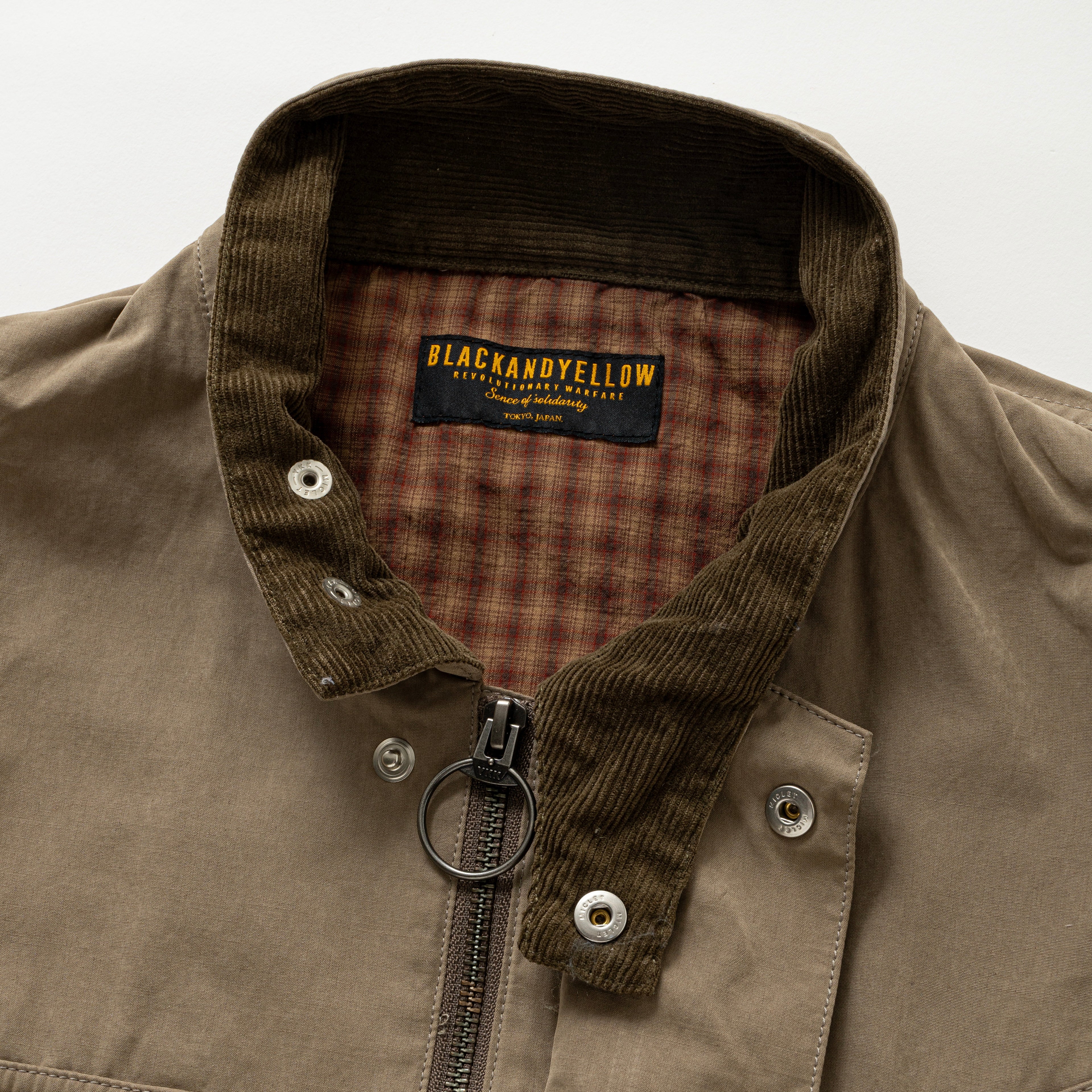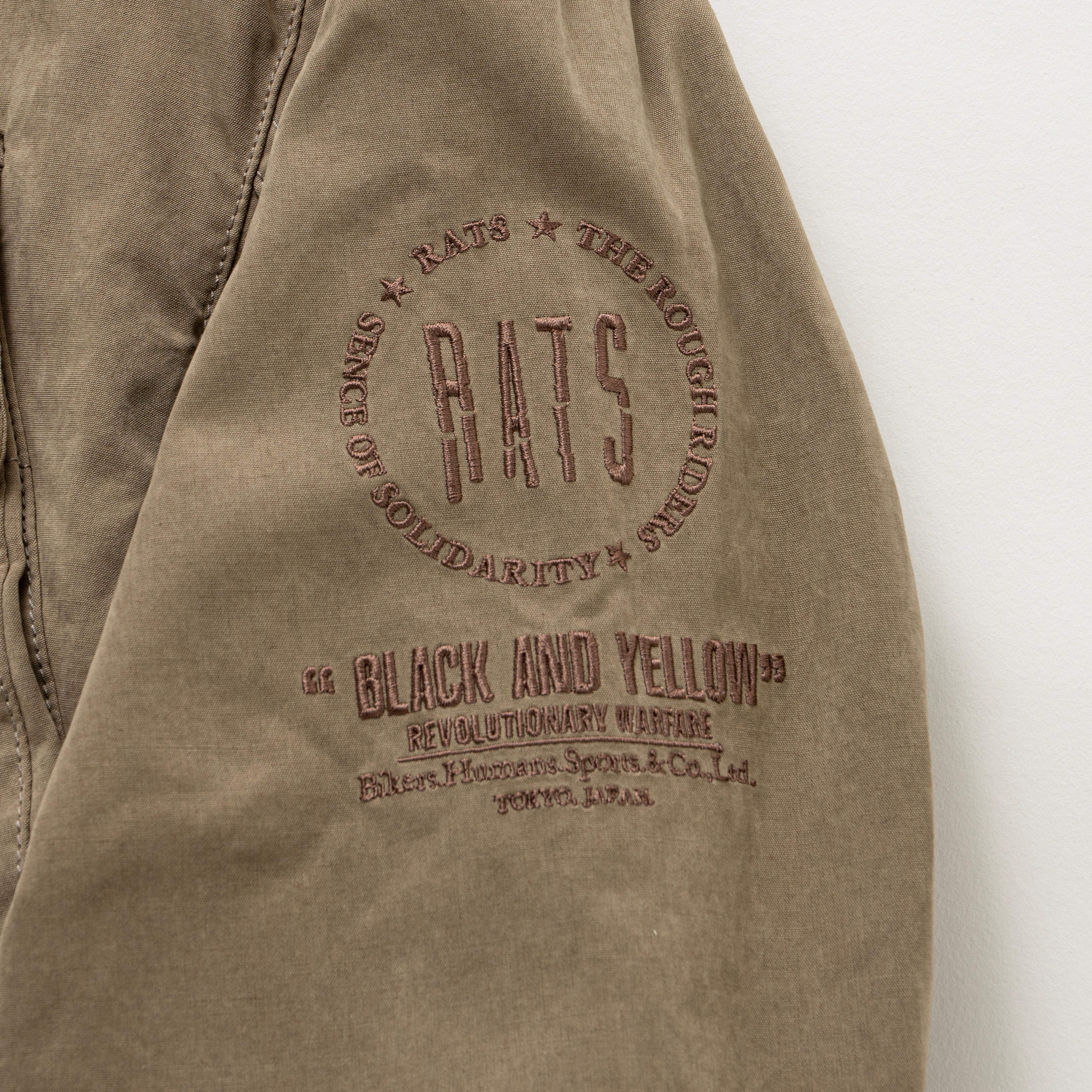 撥水性・防風性に富むコットン/ポリエステル/ナイロンの三者混生地を使用したライディングジャケット。両胸のフラップポケットは左側のみ斜行させた仕様。左袖にRATSロゴ・レターグラフィックを直刺繍。ポケットマチ・脇下マチにベンチレーション、背面腰位置にアジャスターベルト、背裏にチェック生地を配置。着丈はやや短め、身幅にややゆとりのあるシルエット。製品にてワンウォッシュ済み。2色5サイズ展開。